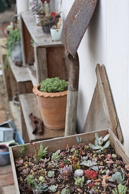 古道具とか適当に並べて 多肉も置いて・・・・・ (*ё_ё*)きゅん・・