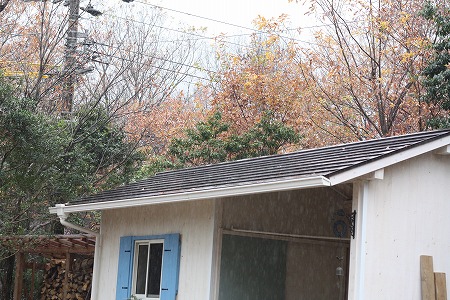 お庭の枯葉を片付けたかったけど、小雨が降ってたので