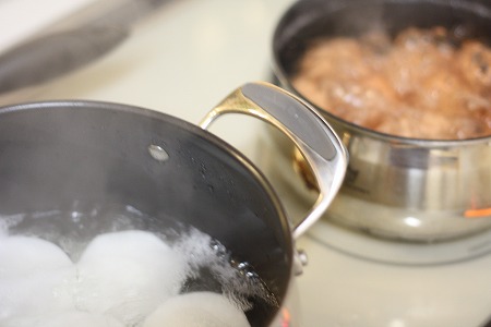 今日は煮込みハンバーグでした。 形にして焼くそして、ソースを入れて煮込み完成!!