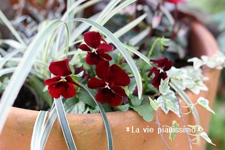 そして、ビオラのクリスマスっぽい色のと お隣さんにいただいた ハクリュウかな??