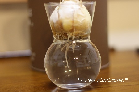 さっき、暗室(きちゃない物置)から ヒヤシンスを取り出しました