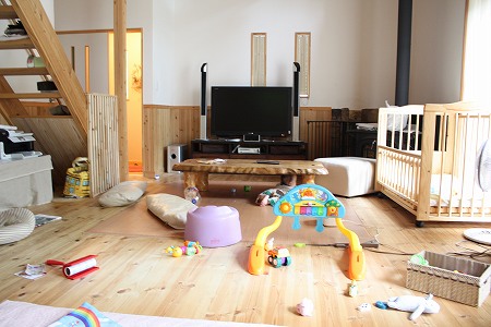 階段には、りっくんに触られては困る物を積み上げてあるし・・・・・・