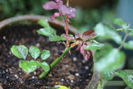 shiokoさんからもらった挿し木のミミエデン 枝が折れてテープでなんとか頑張ってくれて