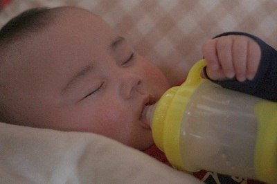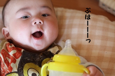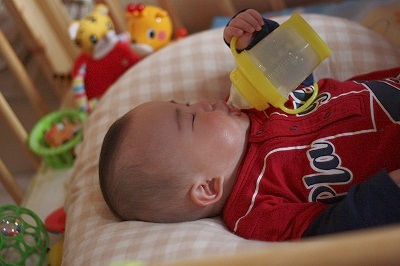 ギャン泣きのりっくんには、ミルクを自分で飲んでもらっちゃいました(笑)