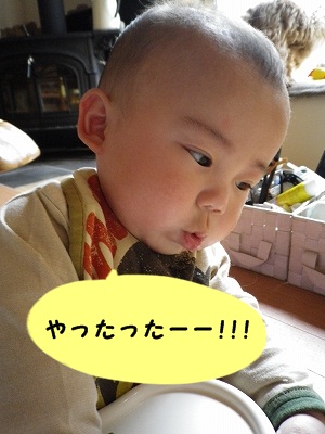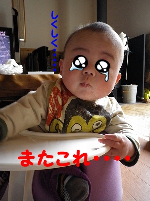 口に入る量が少なかったのか、ギャン泣き・・・・ もっと勢い良く食べたそう(^▽^;)