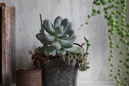 その横には とももちゃんが作ってくれた 多肉とセダムの寄せ植え(*・∀-)☆
