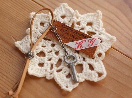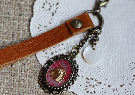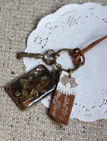 この間作ったのを 少し作りなおして 古切手のバックチャーム