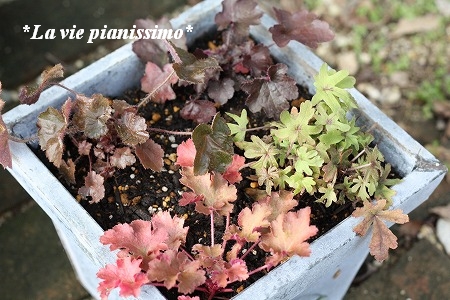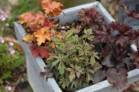 成長と言ったら 荷車の中のぽーちゃんの、とももちゃんが送ってくれた ヒューケラ