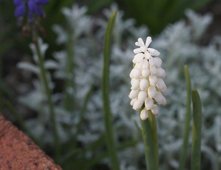 白いムスカリ 白いのって 紫のに比べると お花を咲かせるの遅いし お花も小さいね。