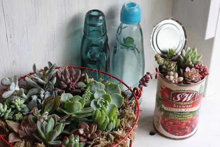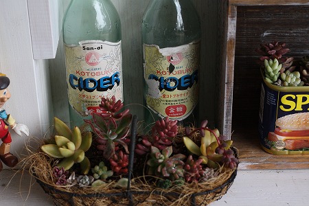 古い瓶と多肉たち♪