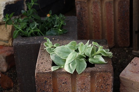 穴のあいた ブロックに土をいれて、いただきものの ベビーサンローズを植えてみたよ!!