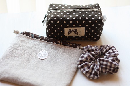 とももちゃんと柄違いのポーチ と 巾着 それと シュシュです。