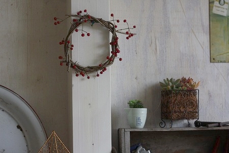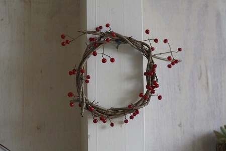 赤い実を 適当に リースに刺して 完成ーーーーーーー!!!!