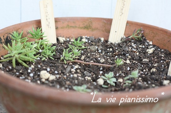 そして、コノ間、お嫁に来た セダムちゃんたちも 少し鉢に分けて植えなおし。