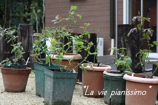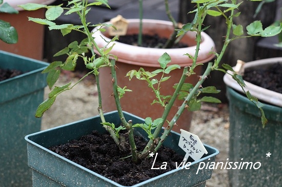 この小さな 100円のバラの鉢に植えてみました。 こんなんでいいの??