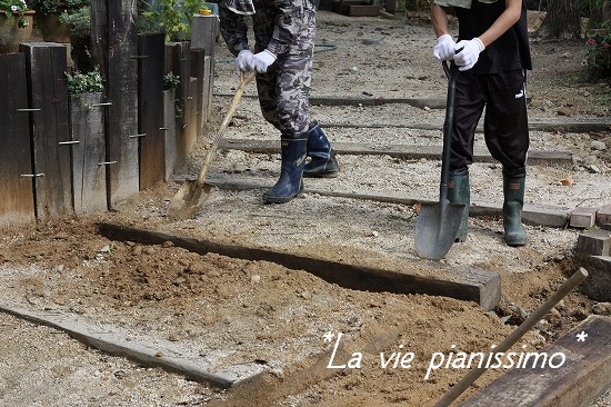 庭は自分たちで!!(お金が無い)