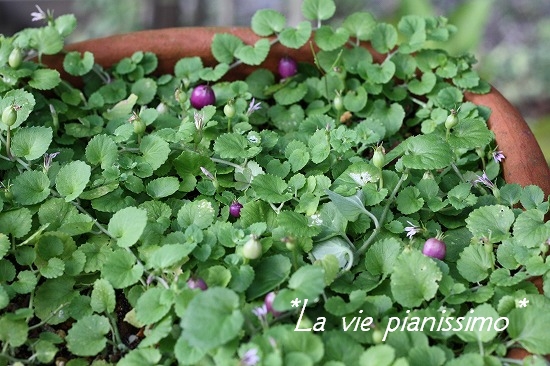 こちらは、大好きなダイコンドラ。冬はまったく無くなってた鉢。いまはこんなに可愛く♫♬