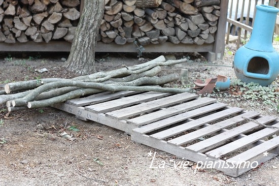 枝は乾燥して、焚き火で燃やしちゃいます。