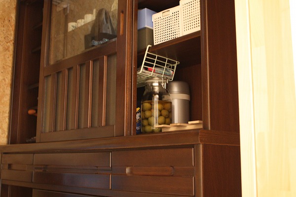 この食器棚は、前にすんでいたマンションのときに使っていた物。